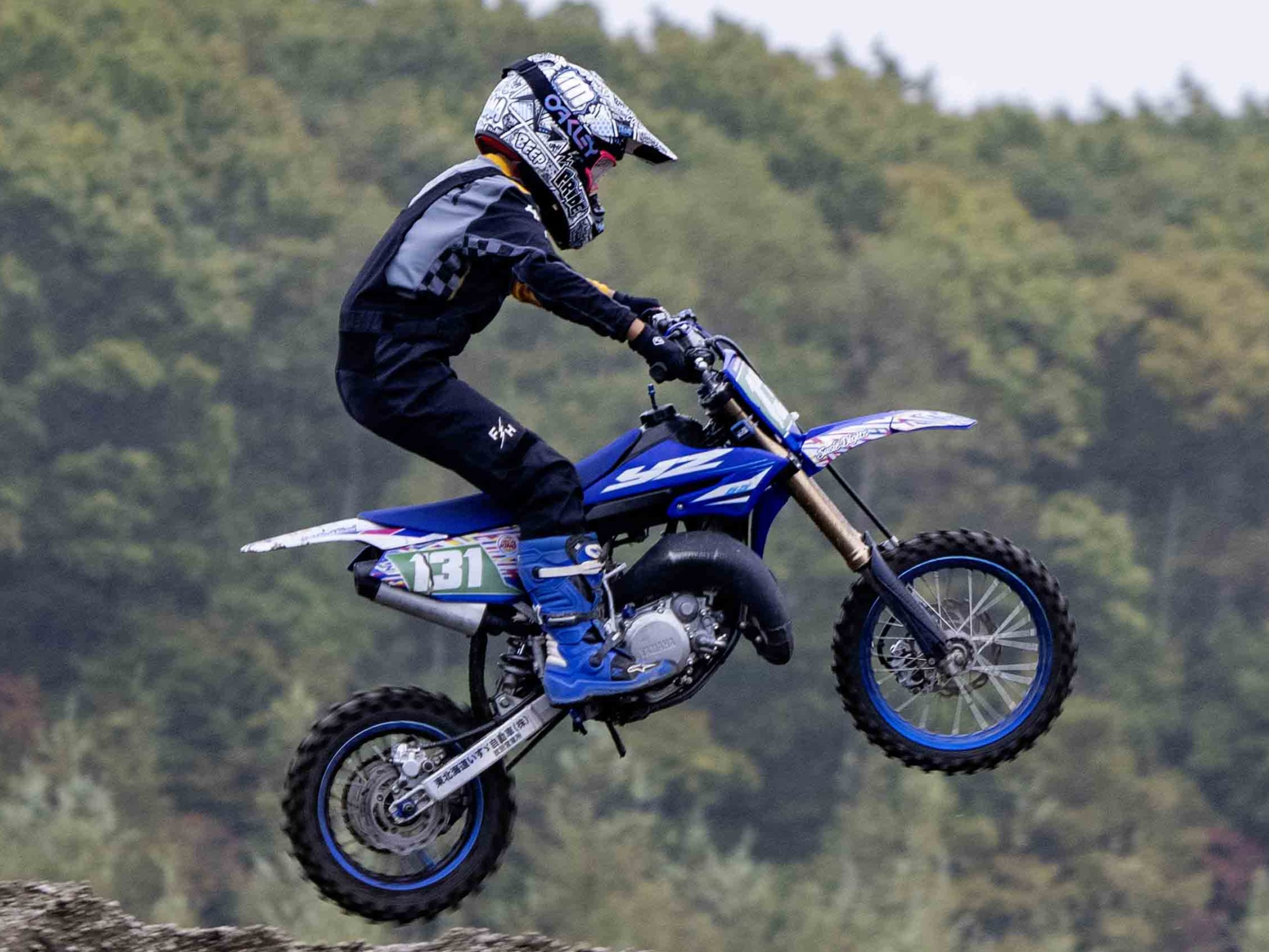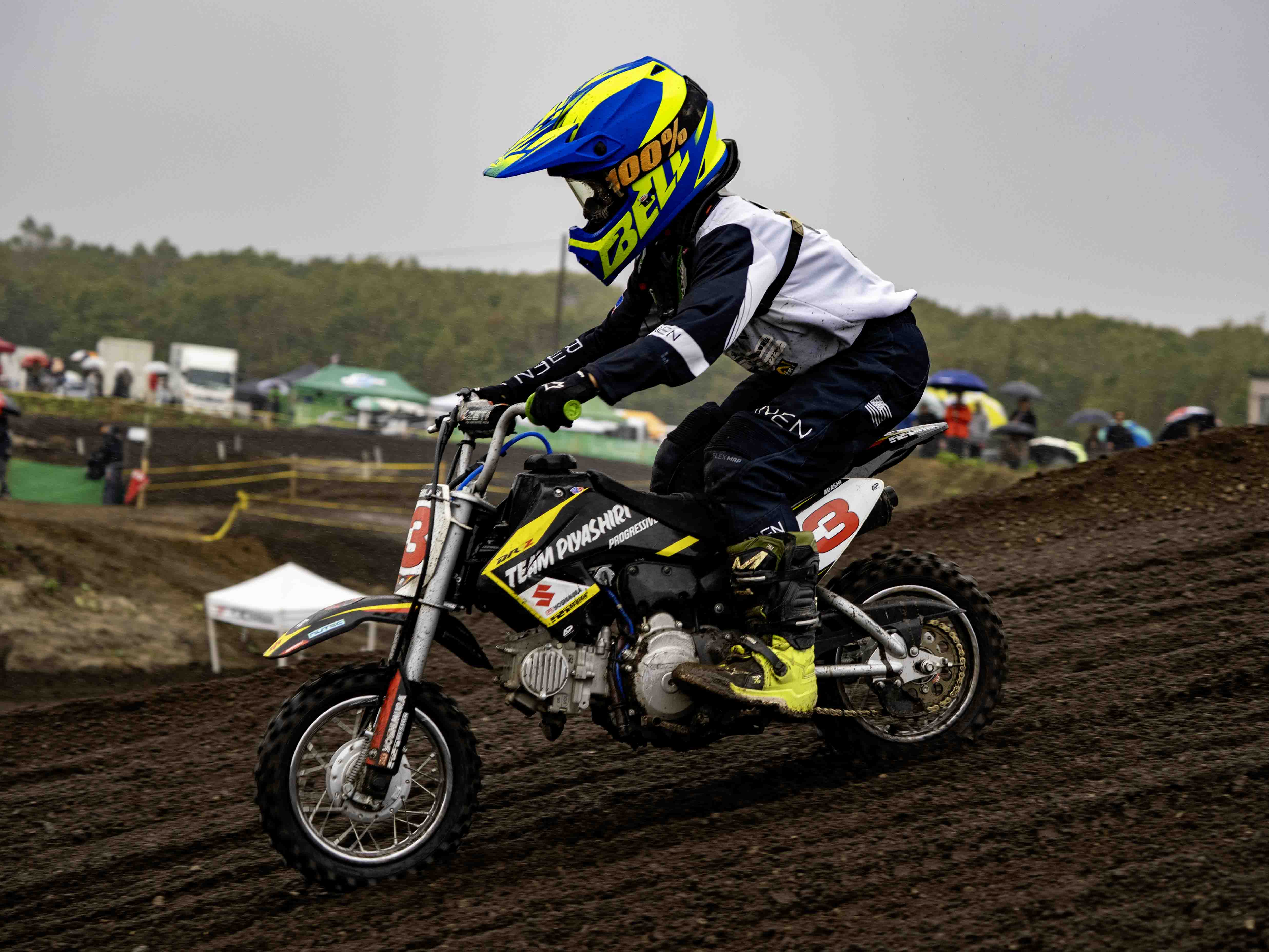 5〜9歳前後のライダーたちがミニバイクで挑むCX(チャイルドクロス)には13台が出場。小さな体で果敢にジャンプをこなす姿が印象的でした。
